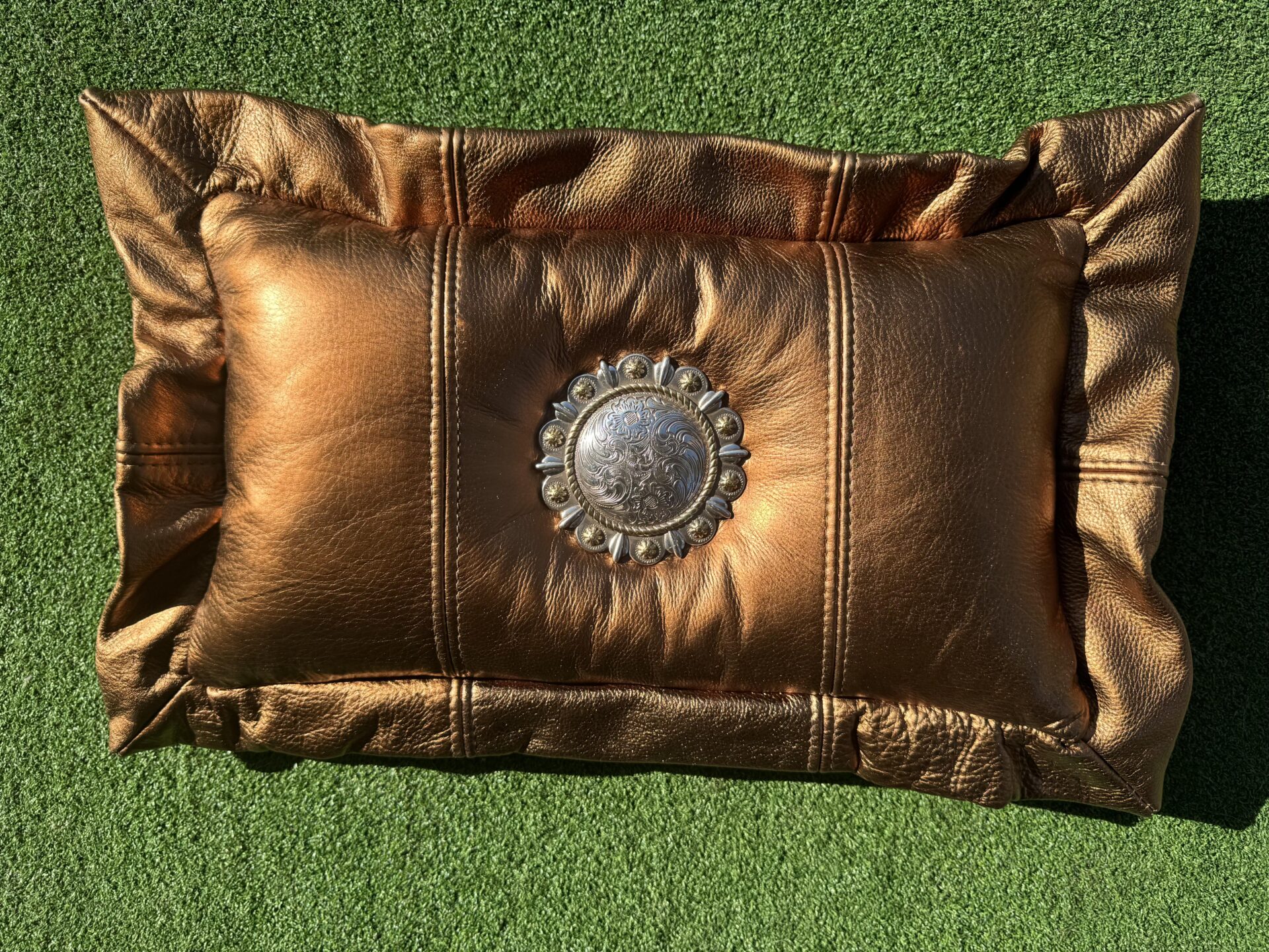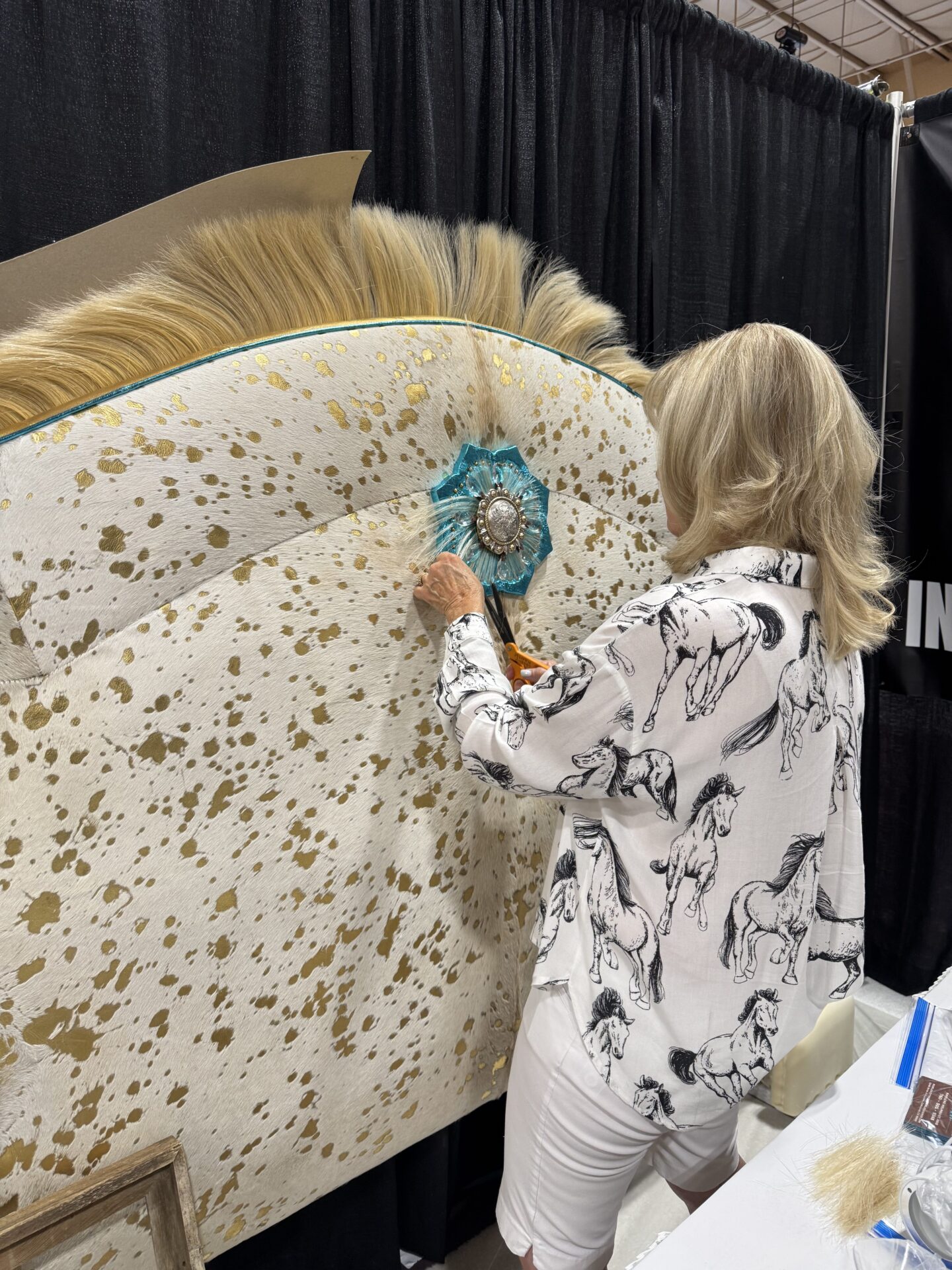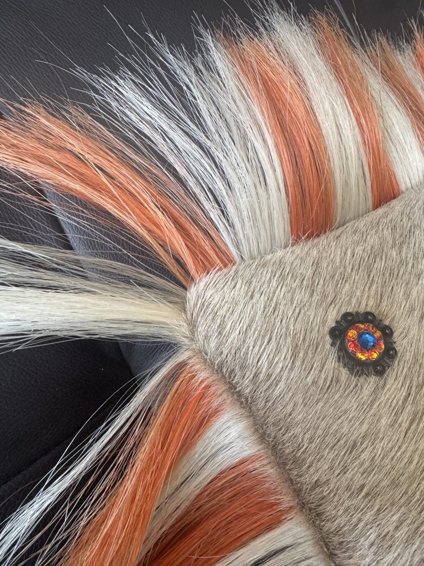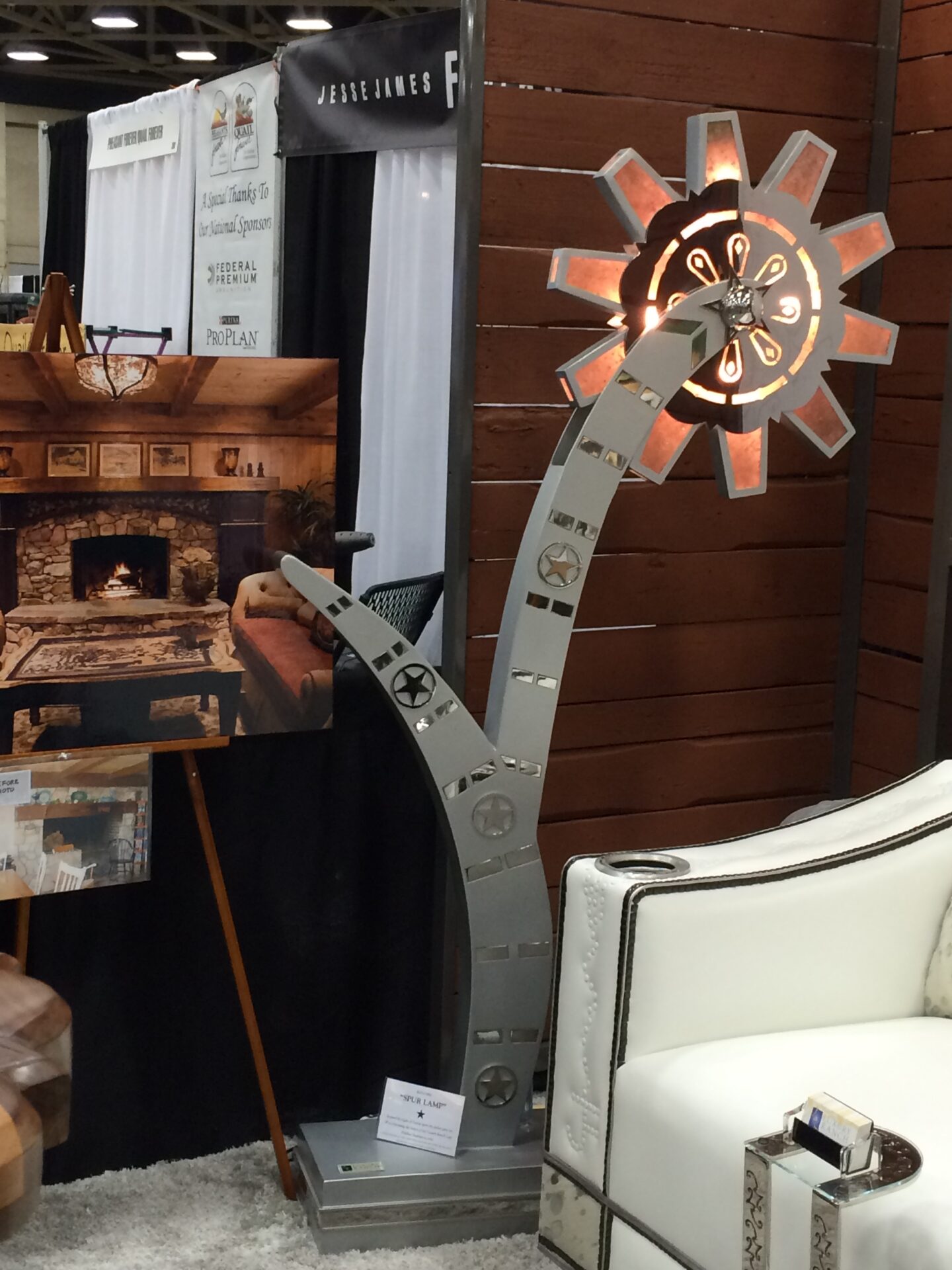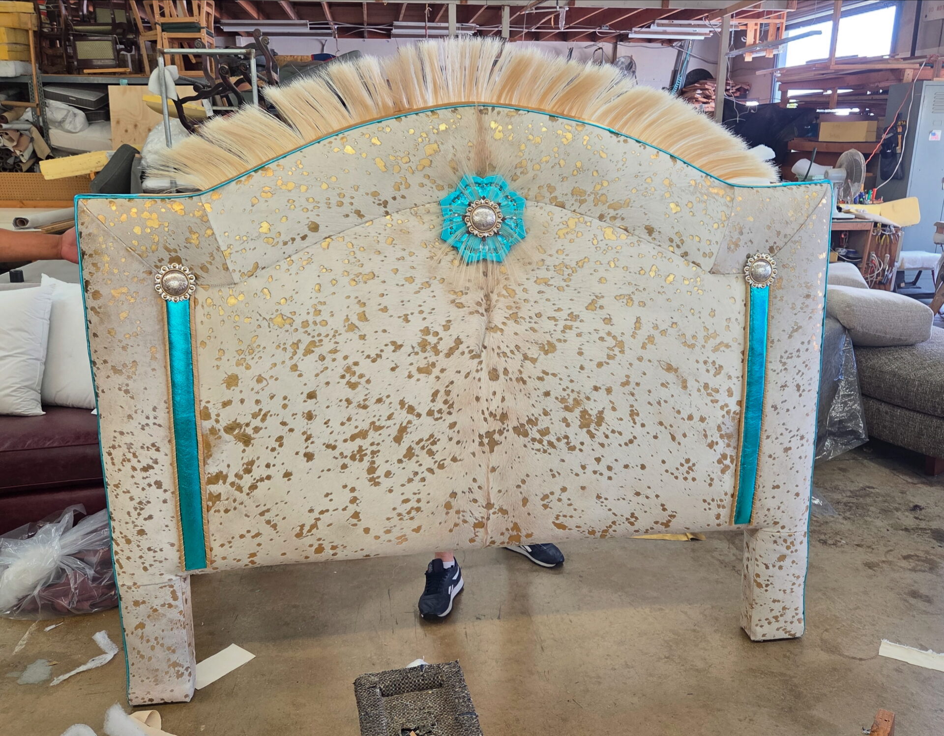 Reminiscent of a western bridle with a brow band, this chandelier design can be made shown with colored Swarovski crystal conchos or traditional silver metal conchos. Let’s design one for your home or barn in any finish or size.