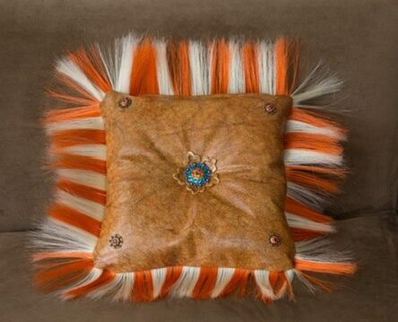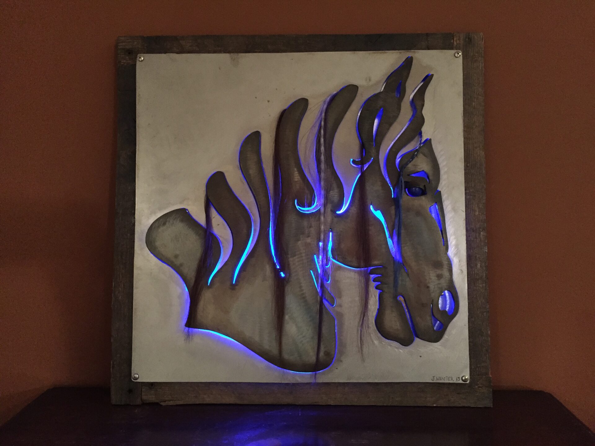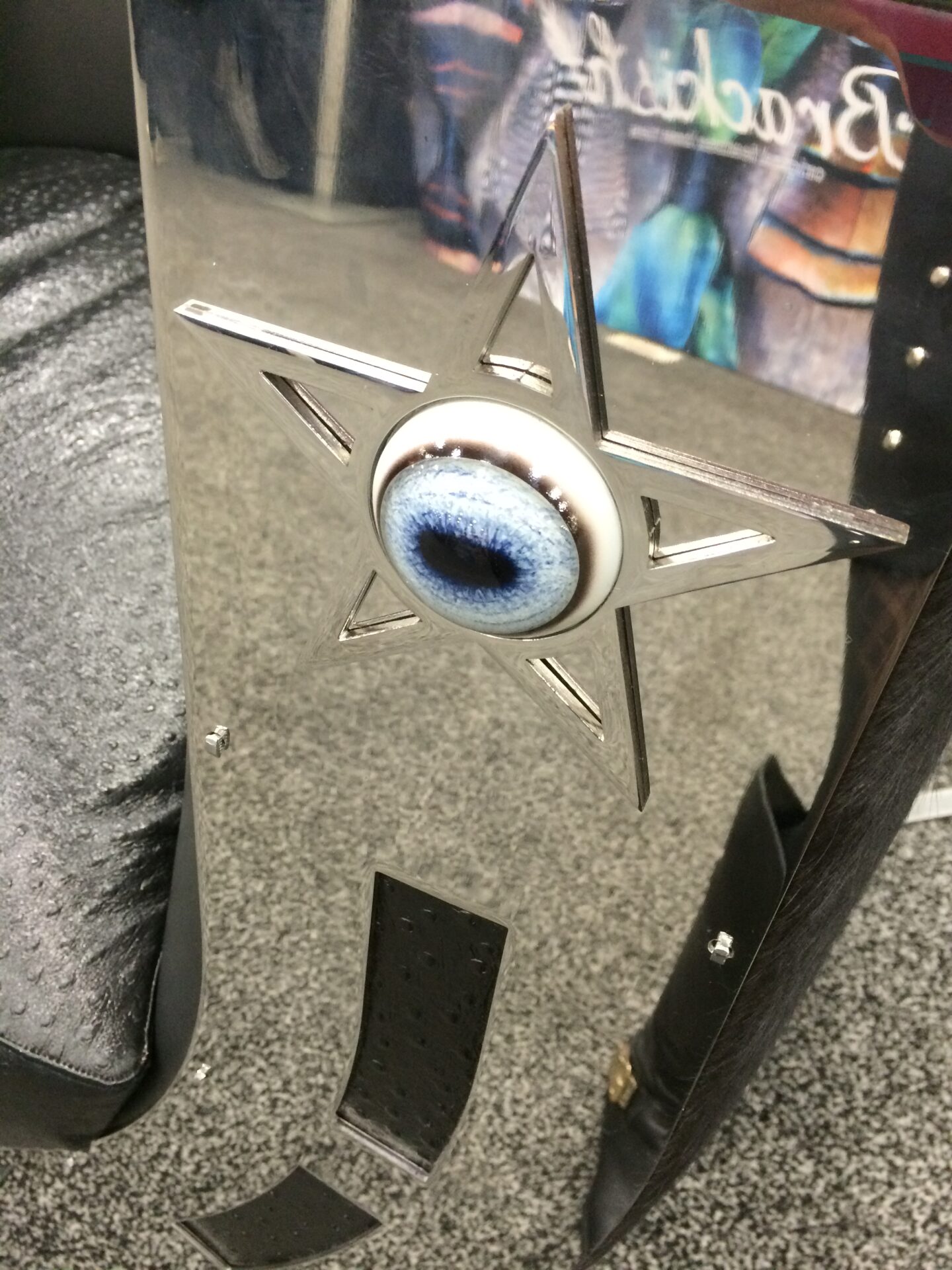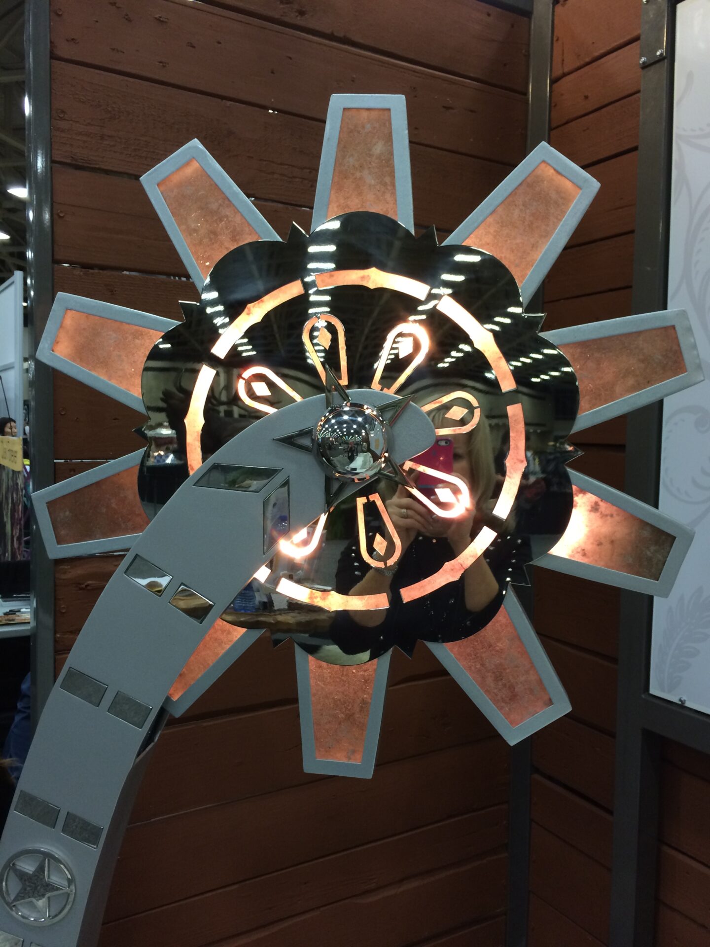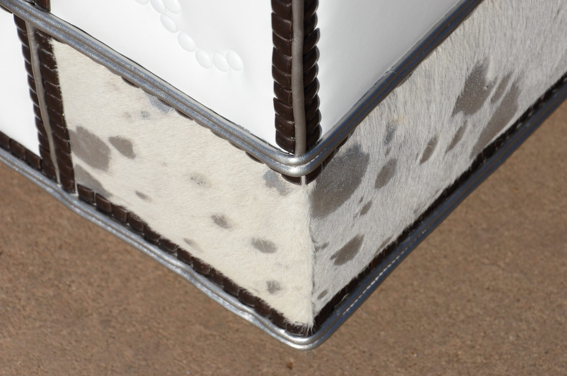 Reminiscent of a western bridle with a brow band, this chandelier design can be made shown with colored Swarovski crystal conchos or traditional silver metal conchos. Let’s design one for your home or barn in any finish or size.