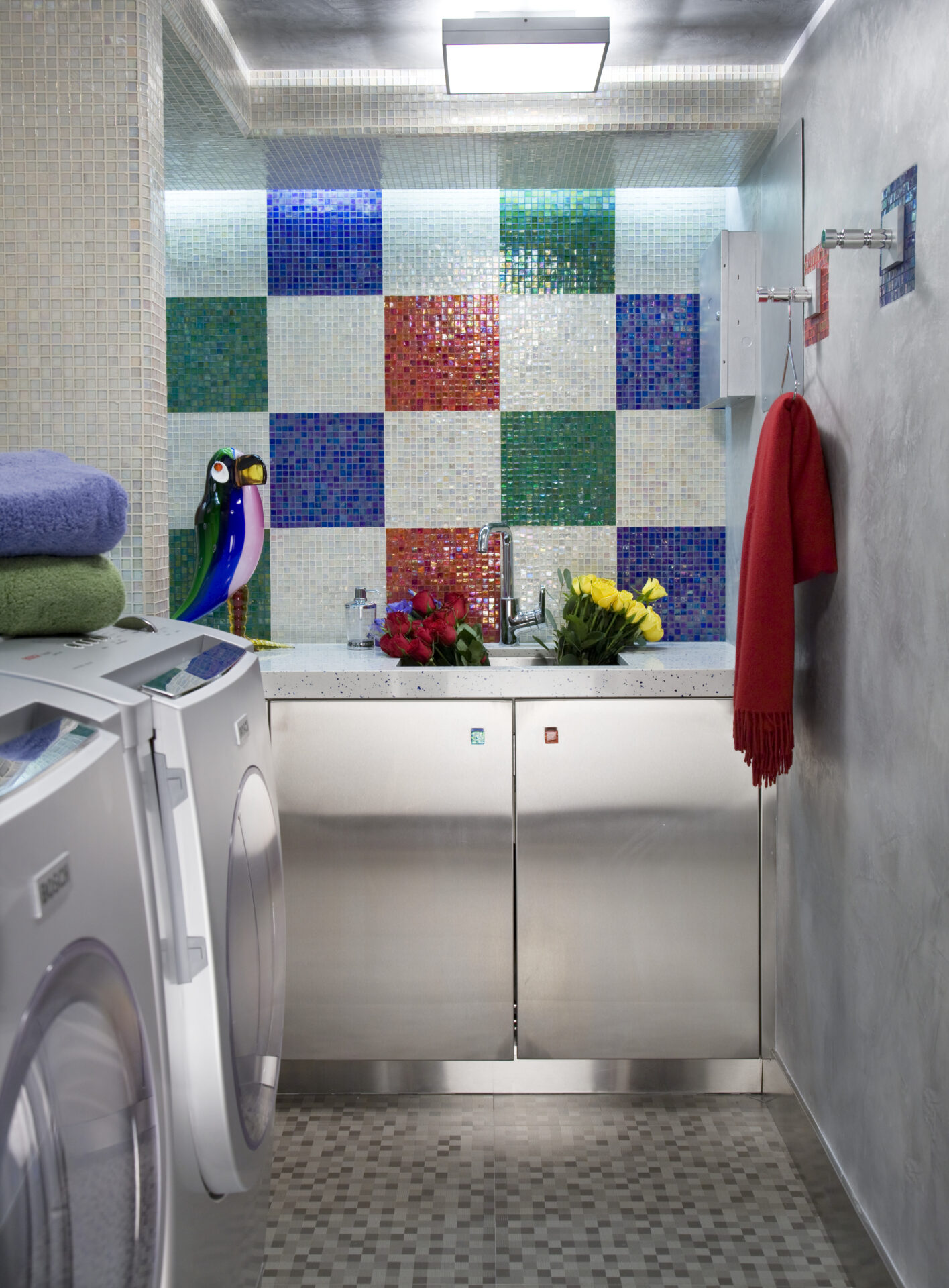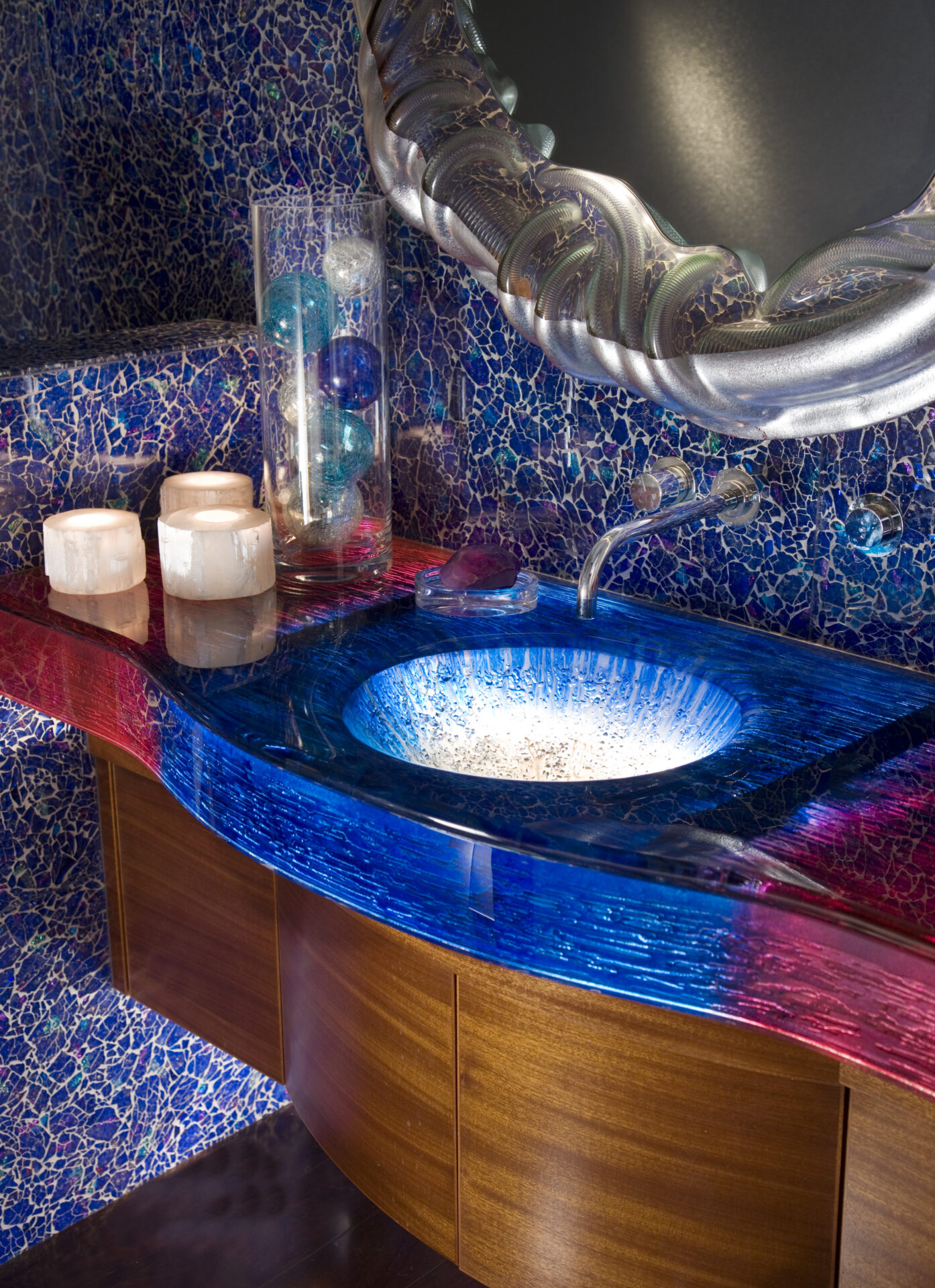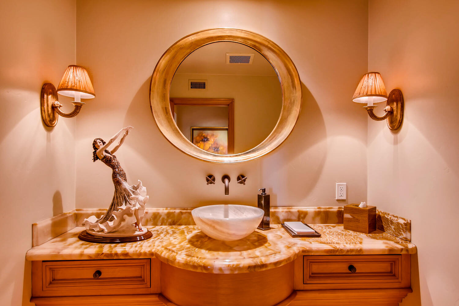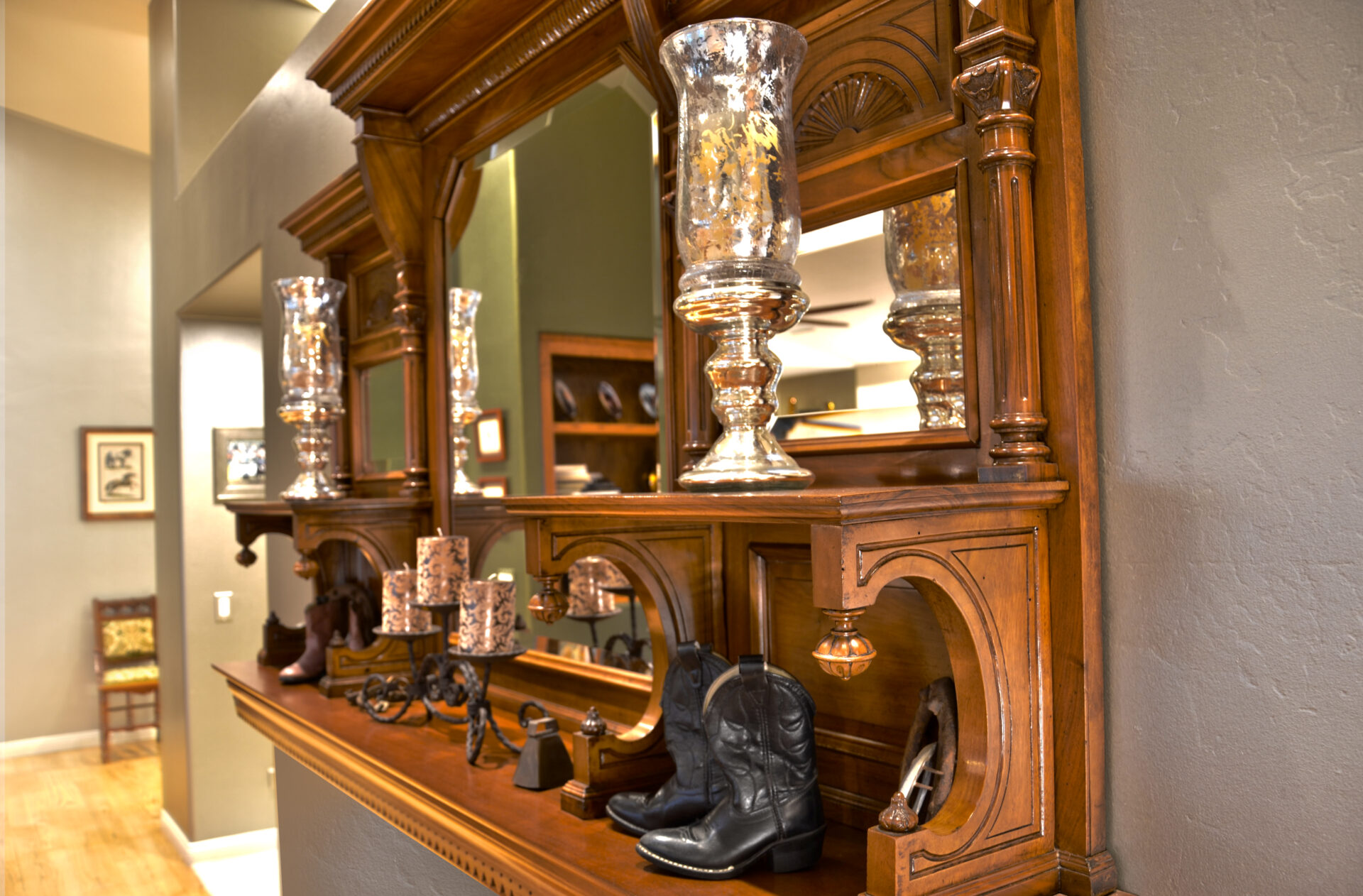 A life sized, primary-colored sculpture of a pig, and a love of cruise ship adventures became the recipe of ‘Home’ for this fun-loving couple. A downstairs bedroom was sacrificed for unhindered entertainment space, and a mahogany lined elevator became a necessity for this ‘Forever Home’