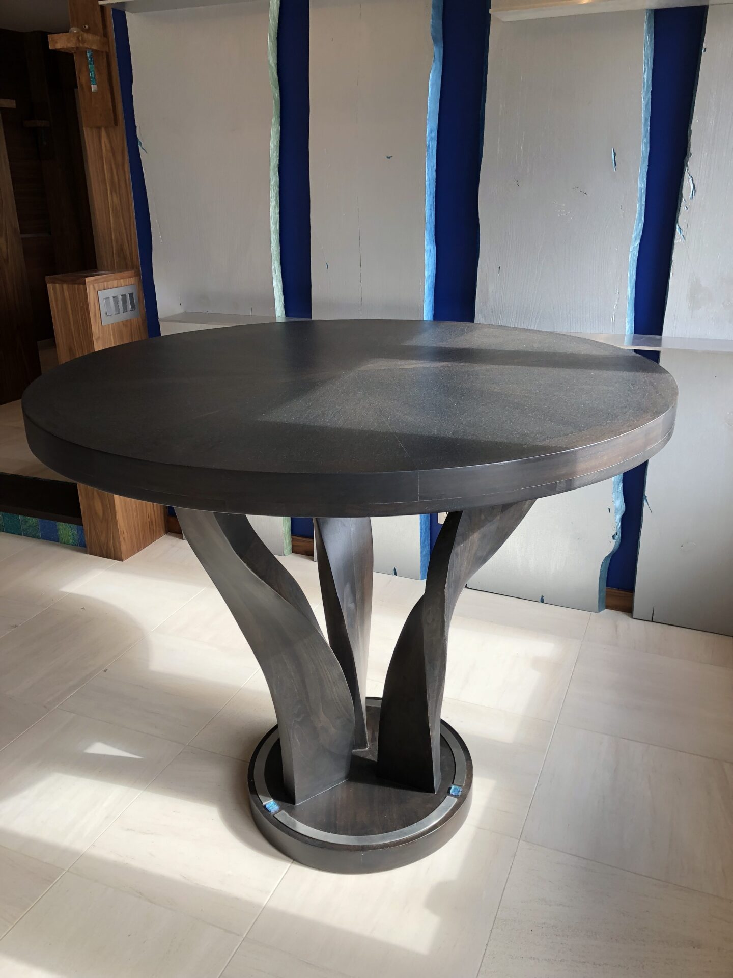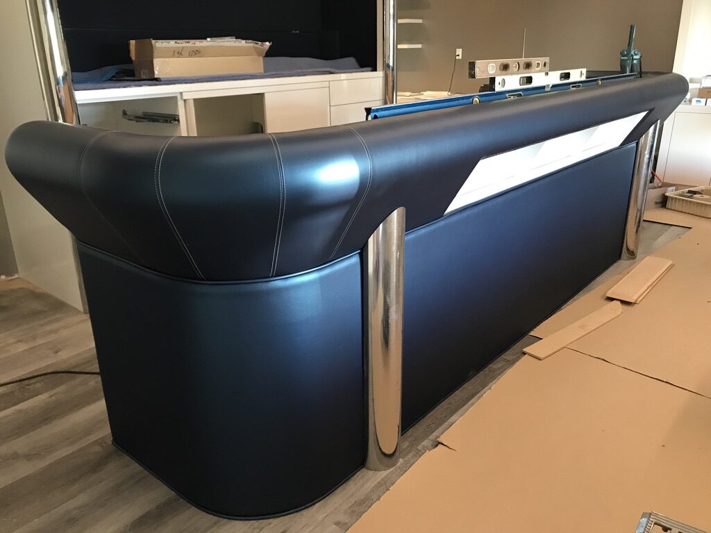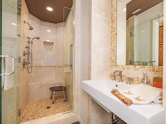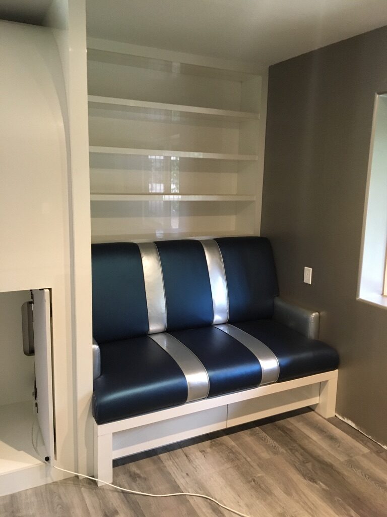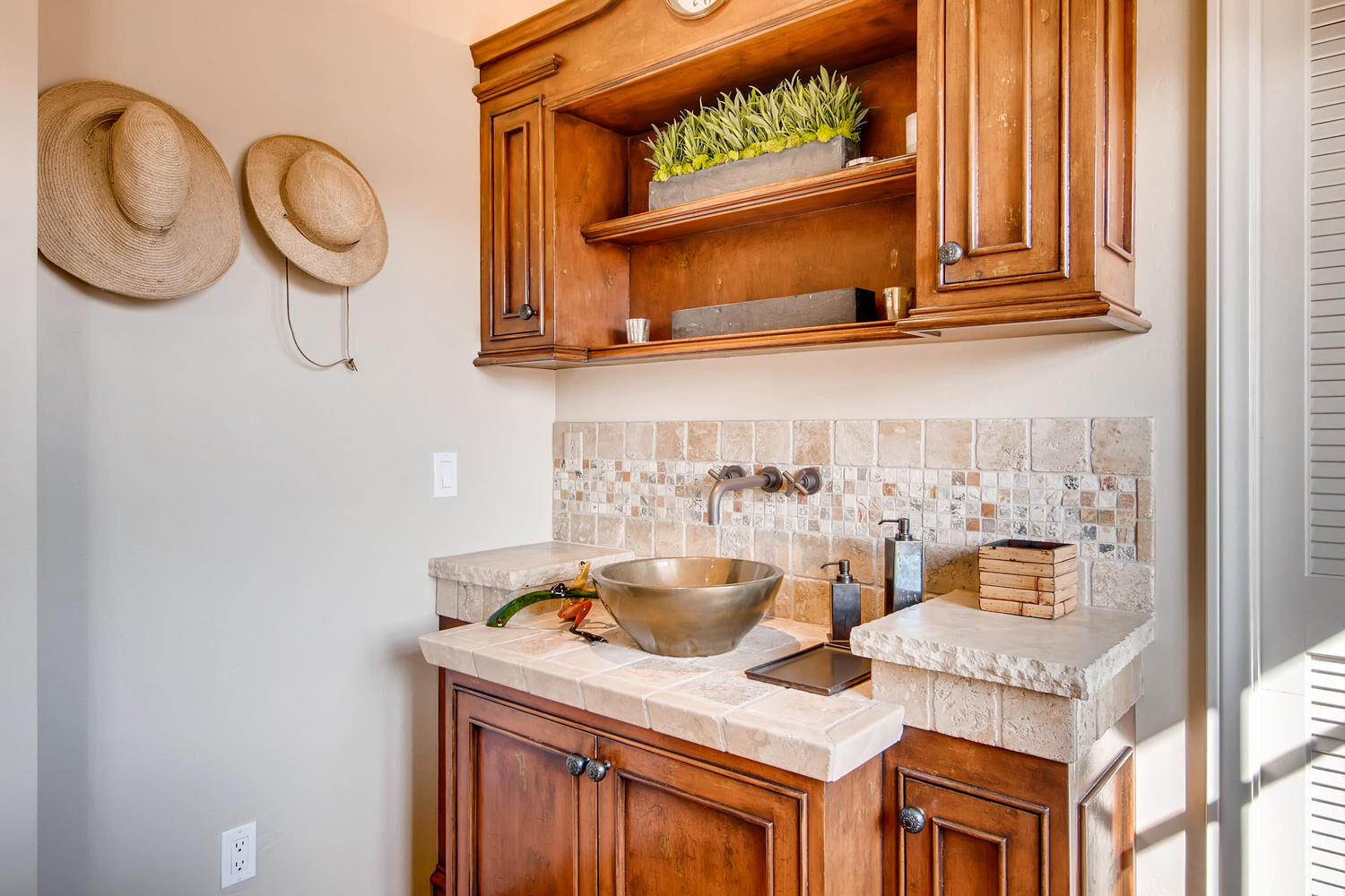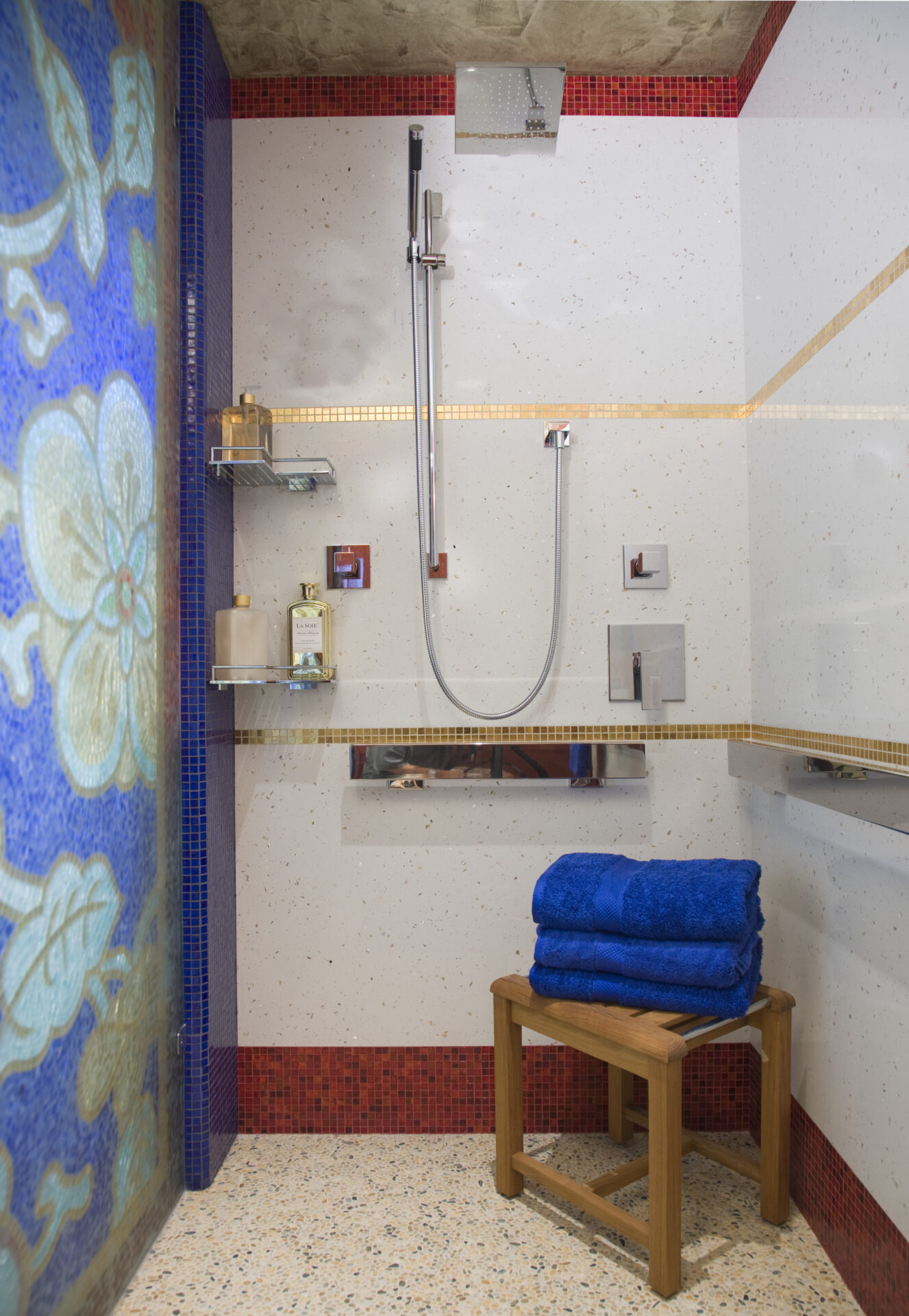 A life sized, primary-colored sculpture of a pig, and a love of cruise ship adventures became the recipe of ‘Home’ for this fun-loving couple. A downstairs bedroom was sacrificed for unhindered entertainment space, and a mahogany lined elevator became a necessity for this ‘Forever Home’