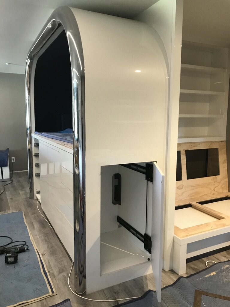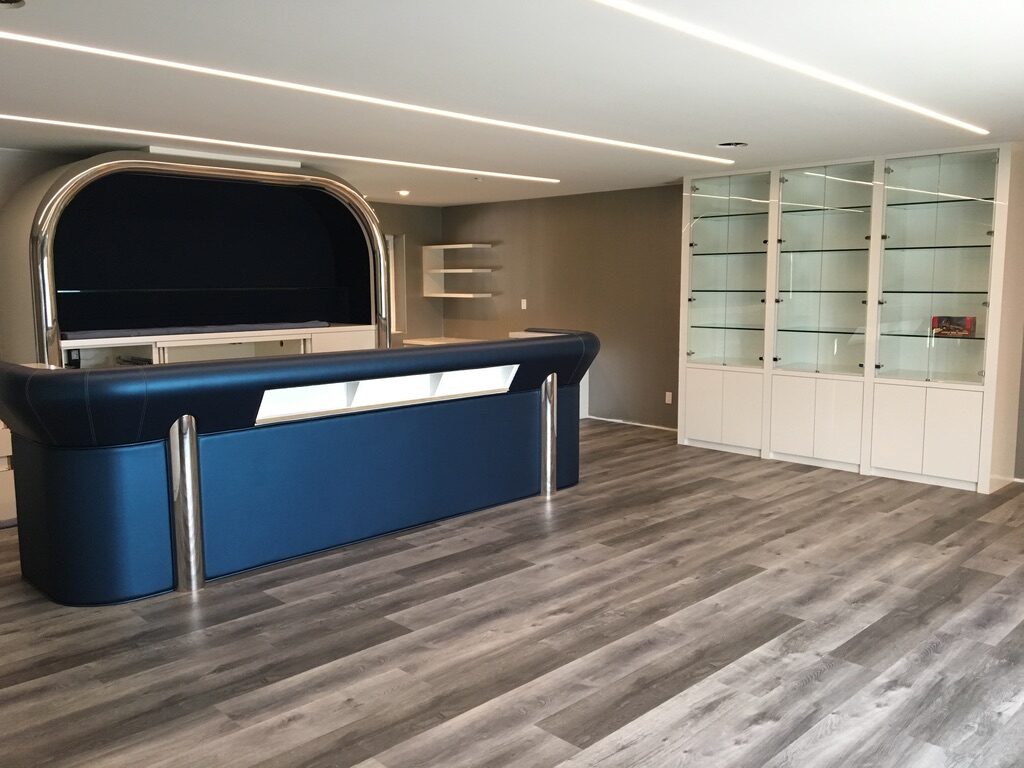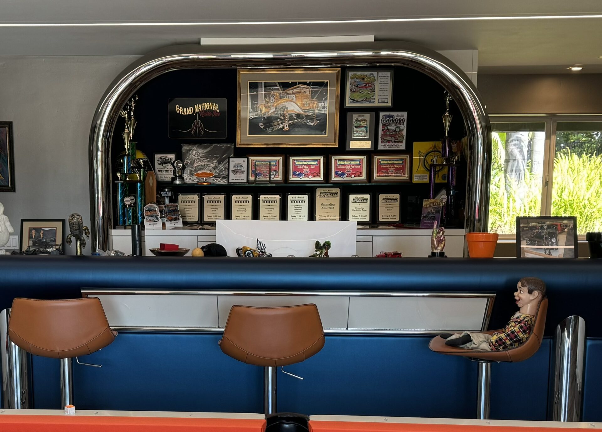 Custom hotrods (built by the owner) were the inspiration for this garage turned ‘trophy room’