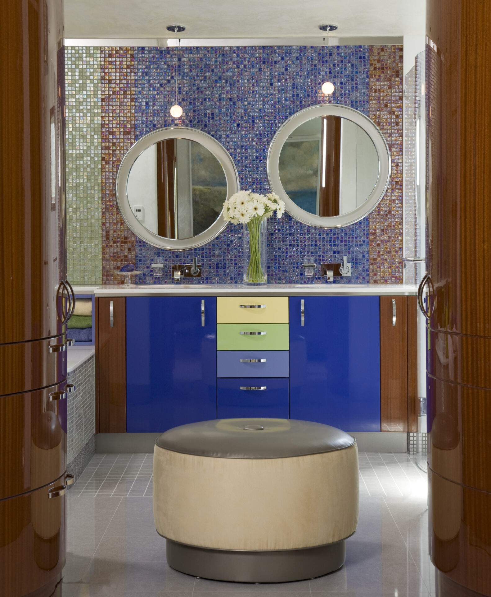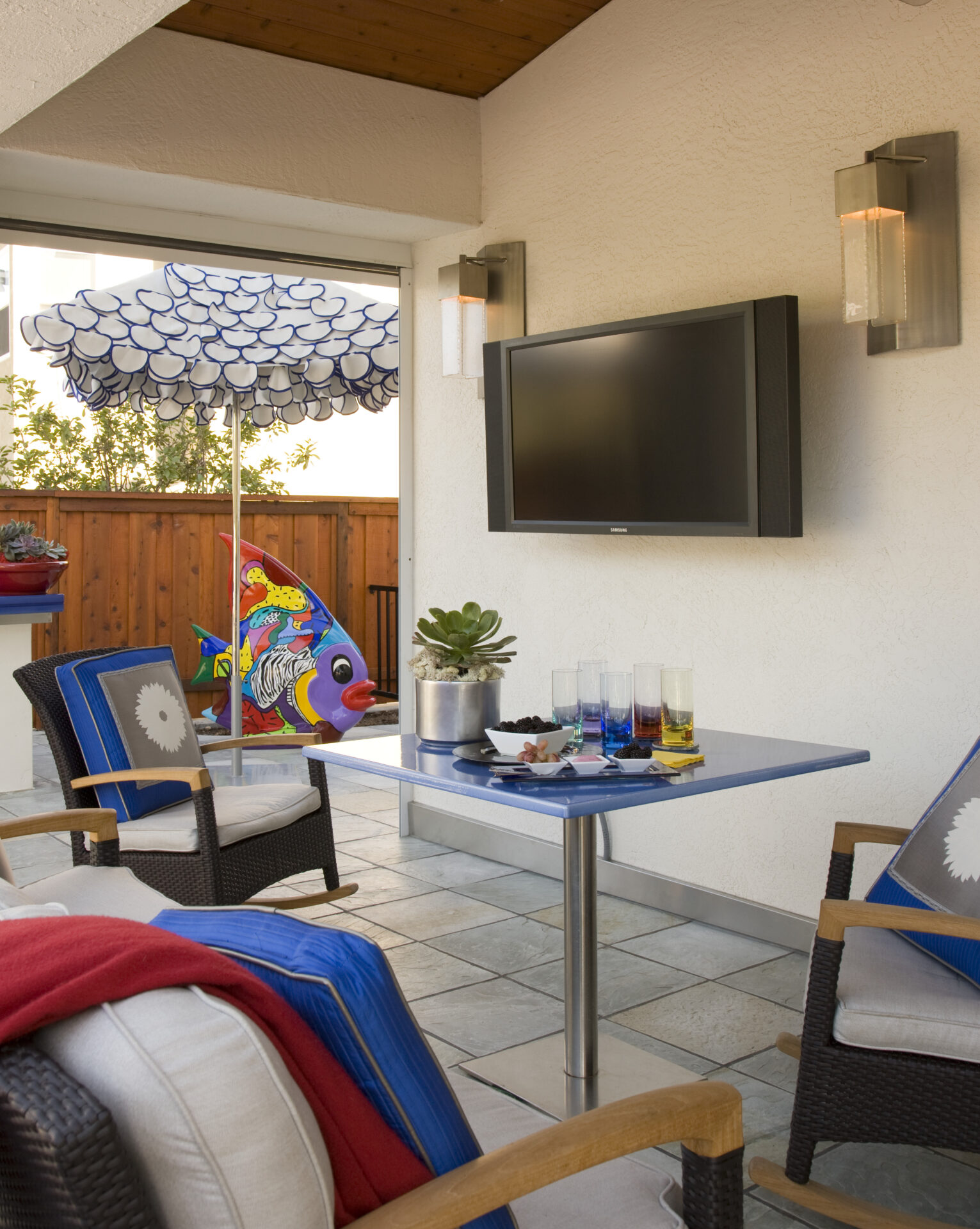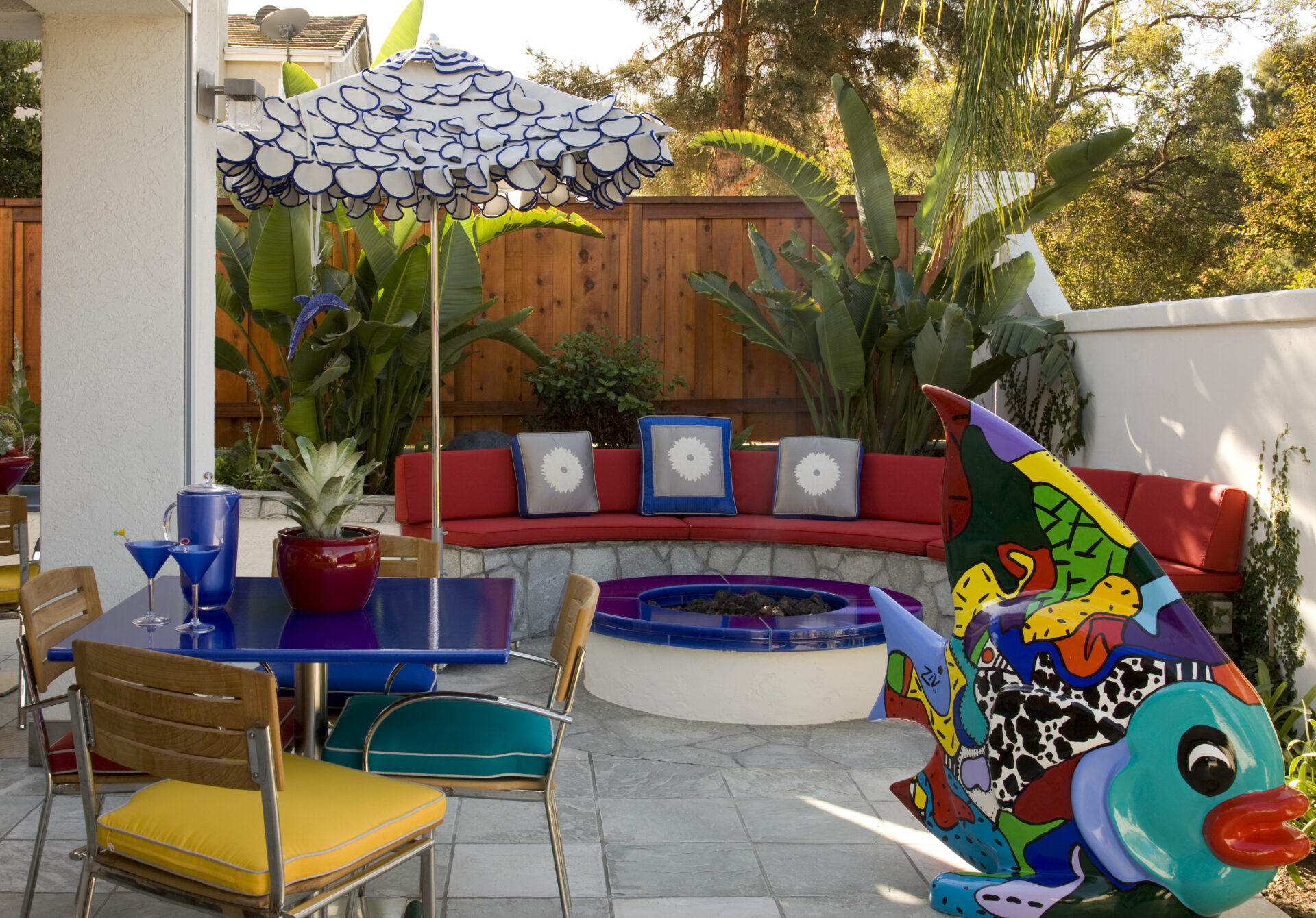 A consistent color palette and radiating forms create a cohesive home with a nautical nod